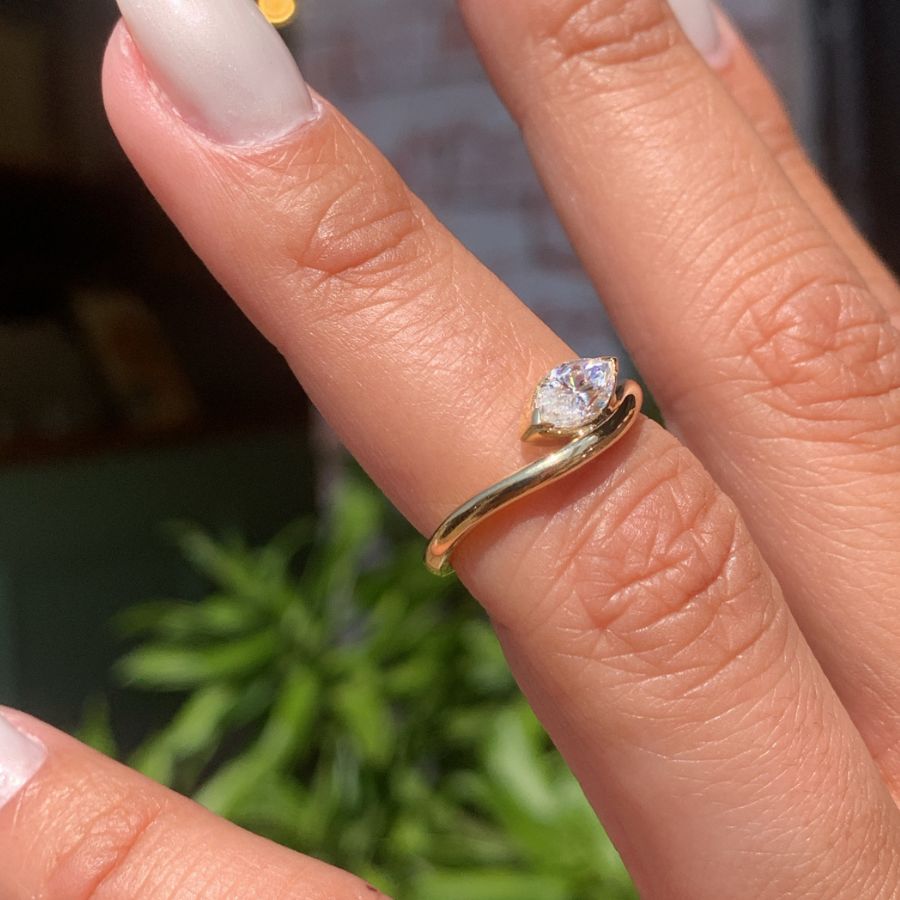 Anel Solitário Lírio com Pedra de Diamante Ouro 18k/750