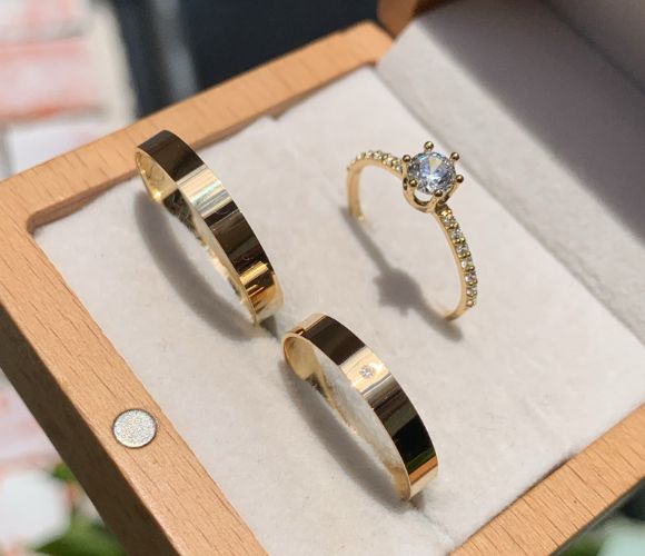 Gold Joalheria, olha.. atendimento é espetacular, as alianças são maravilhosas! Uma qualidade incomparável.. eu não tenho nem mais elogios para dar. Muito.. muito satisfeita, eu e meu esposo. Porque é inigualável o atendimento, e a qualidade superior à muitas que tem por aí. Então a gente é só satisfação, 100% satisfação.. por ser cliente da Gold!