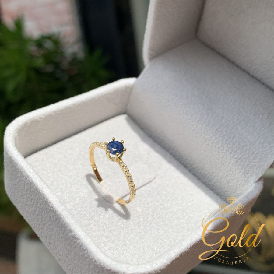 Anel Solitário Santorini Blue em Ouro 18k/750
