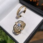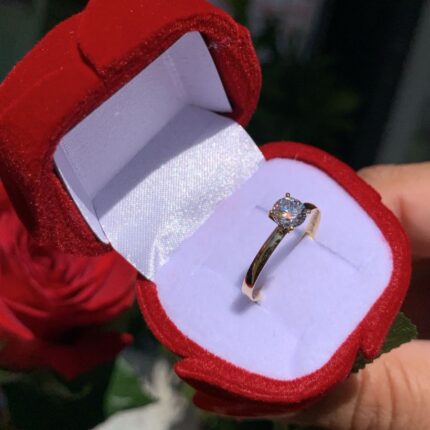 Anel Solitário Lírio com Pedra de Diamante Ouro 18k/750
