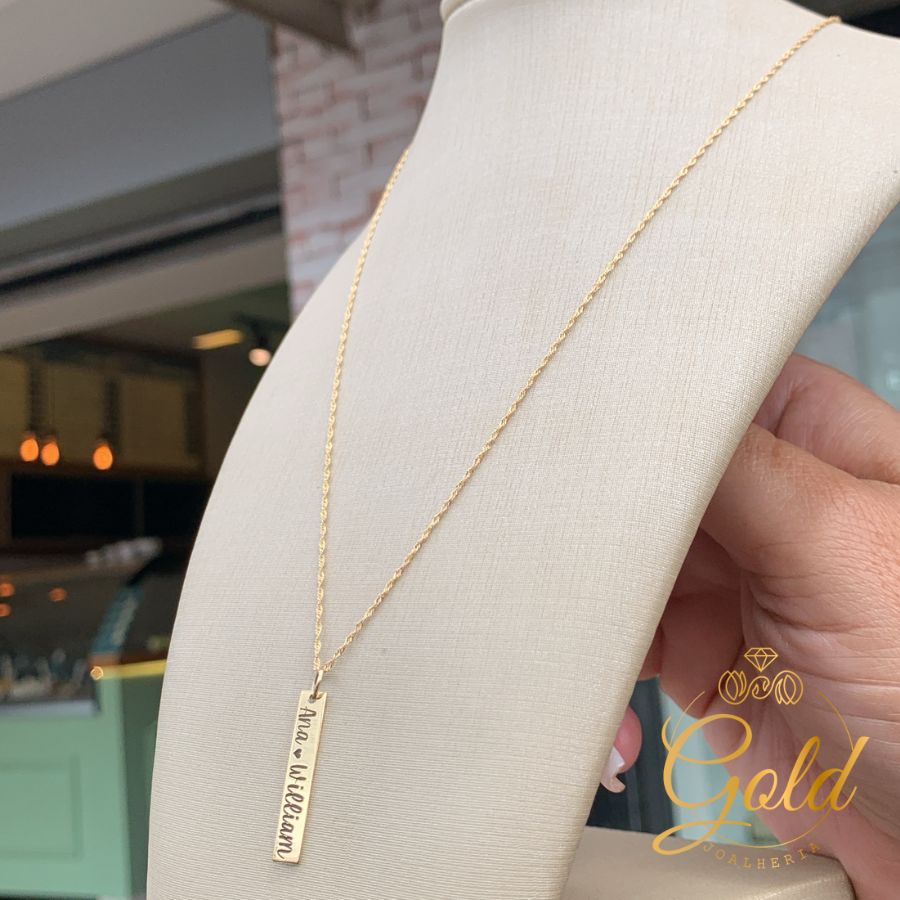 Corrente Singapura Feminina com Pingente Plaquinha em Ouro 18k/750