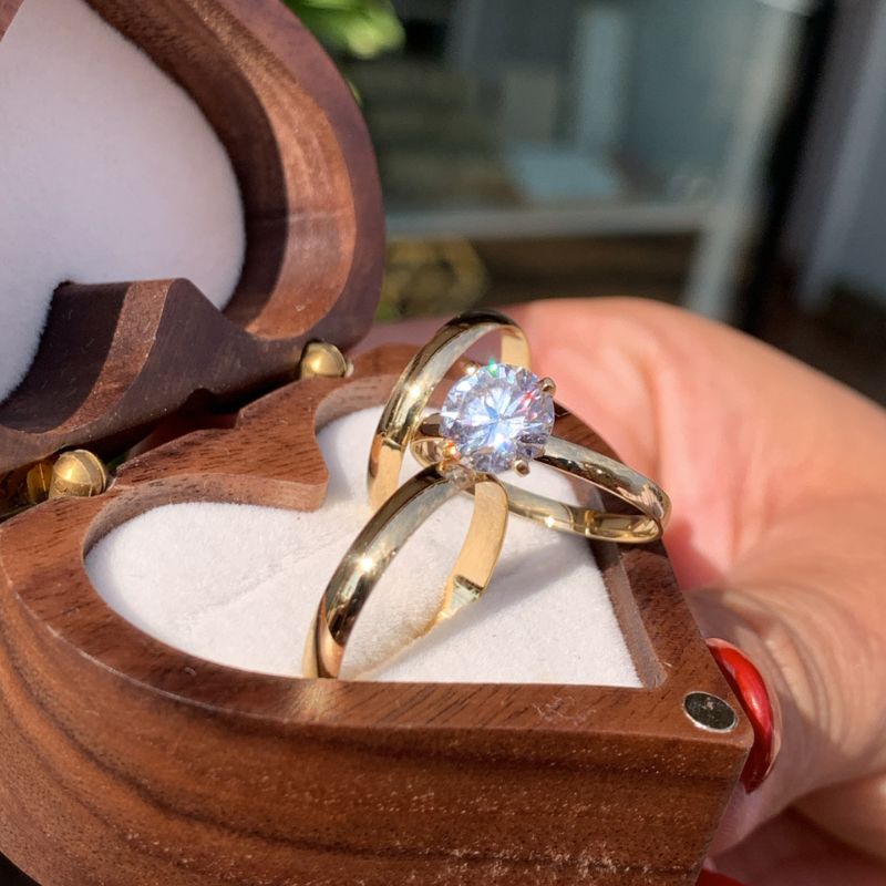 Trio Alianças Infinity 3,5mm + Anel Solitário Califórnia em Ouro 18K