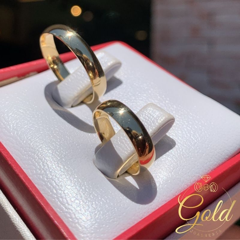 Par de Alianças Abaulada 4,5mm em Ouro 18k/750