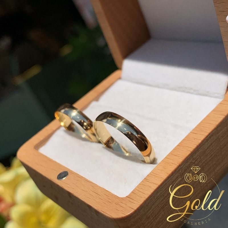 Par de Alianças Abaulada 4mm em Ouro 18k/750