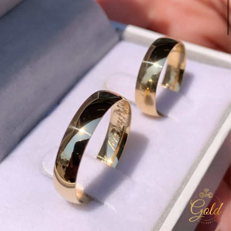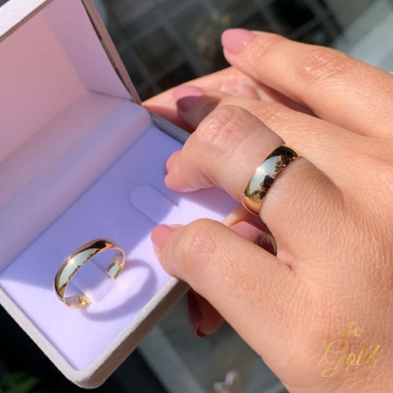 Par de Alianças Abaulada 4mm Feminina e 5mm Masculina em Ouro 18k/750