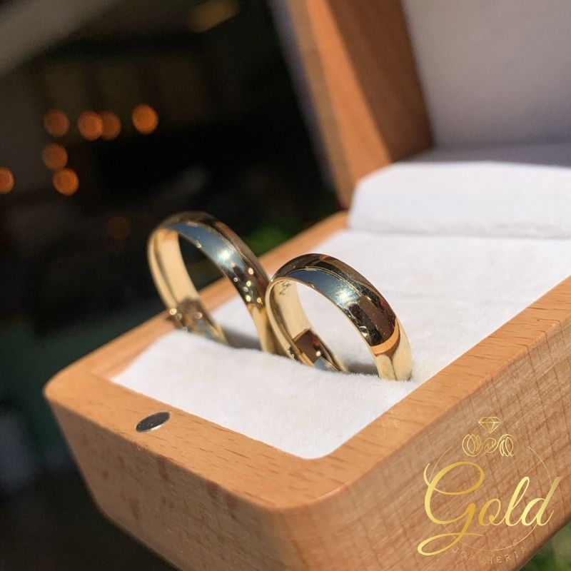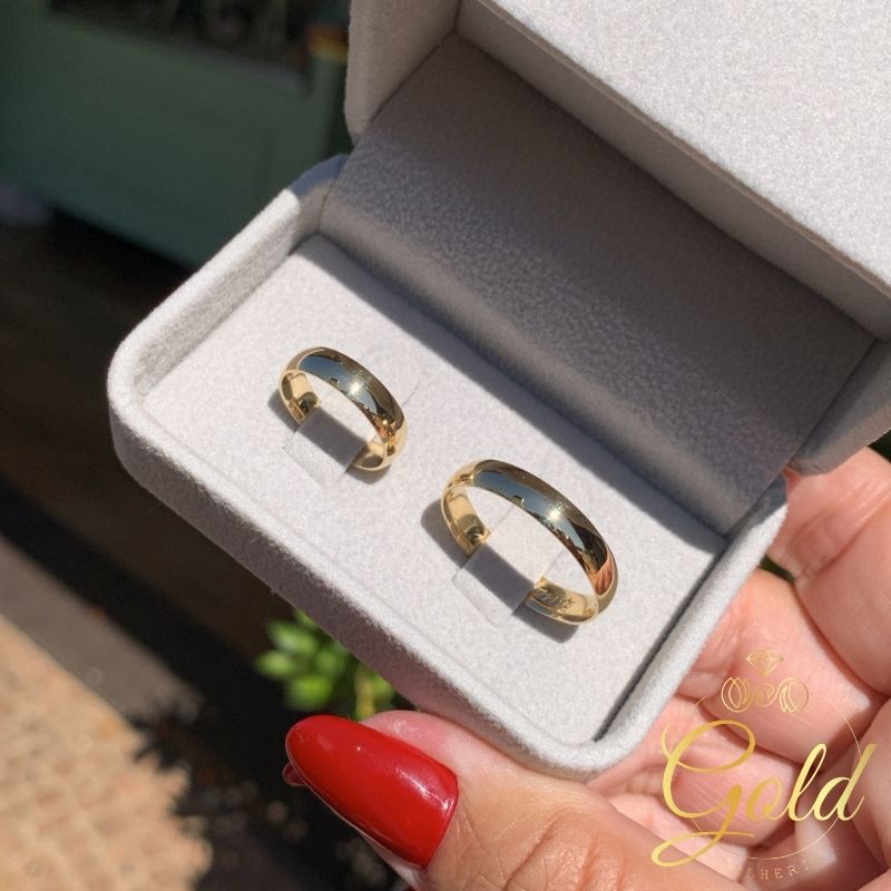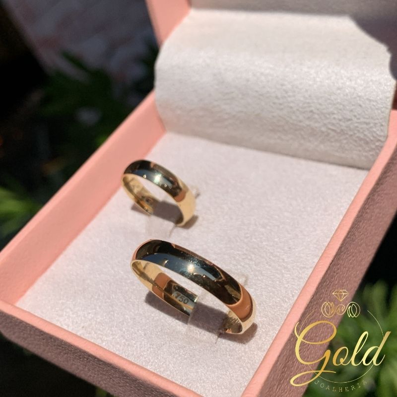 Par De Alianças Abaulada 4mm em Ouro 18k/750