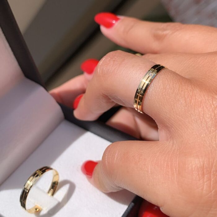 Par de Alianças Arizona Feminina 3mm e Masculina 3,5mm em Ouro 18k/750