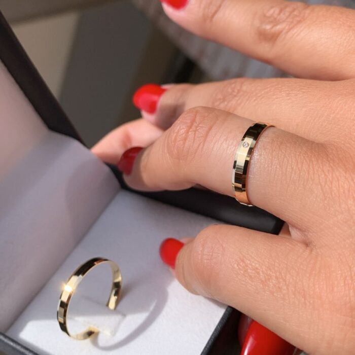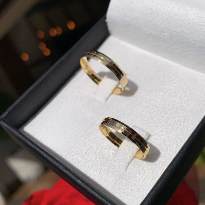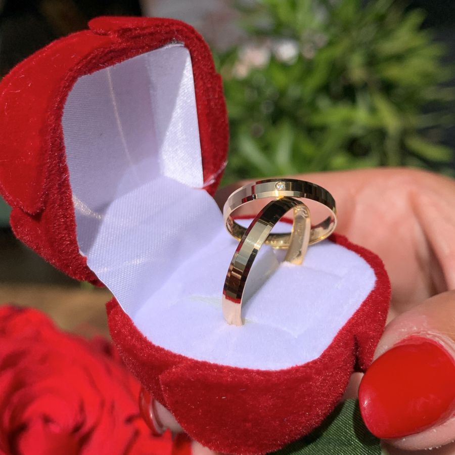 Par de Alianças Arizona Feminina 3mm e Masculina 3,5mm em Ouro 18k/750