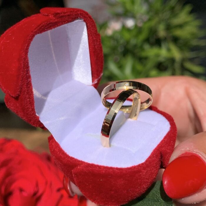 Par de Alianças Love 3,5mm em Ouro 18k/750