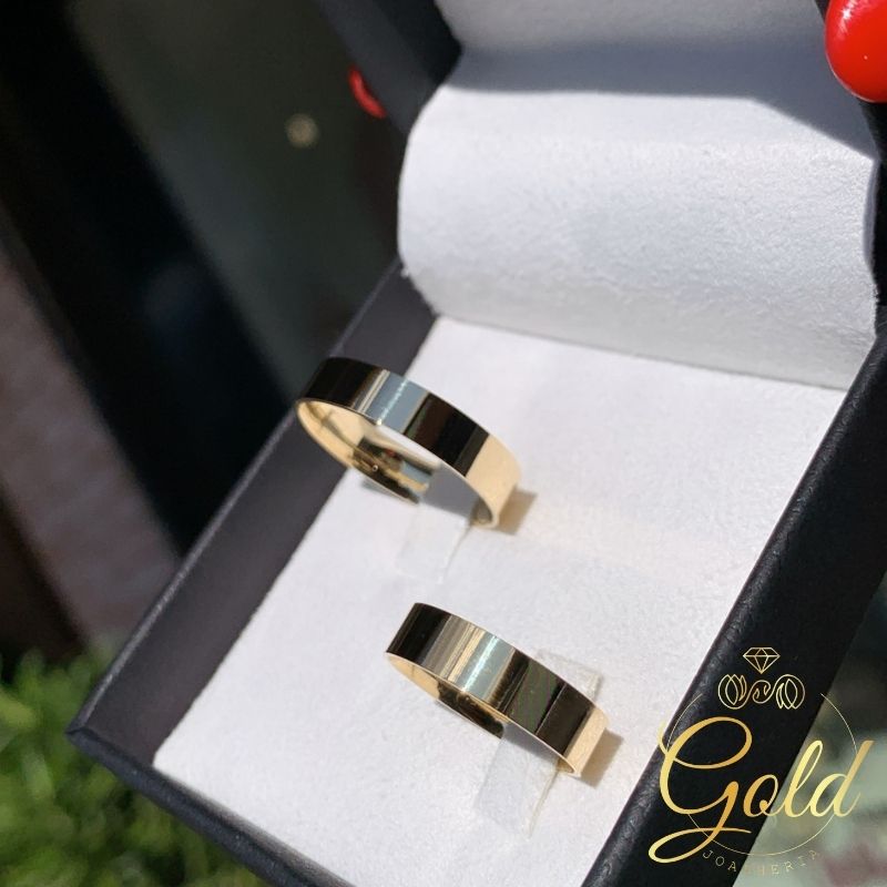Par de Alianças Abaulada 4mm em Ouro 18k/750