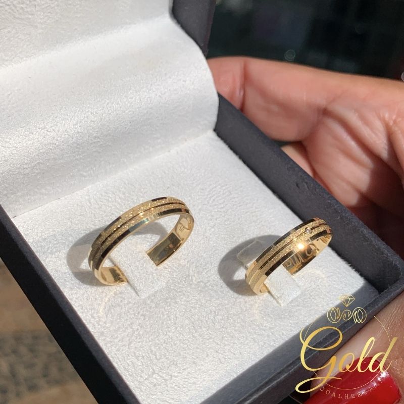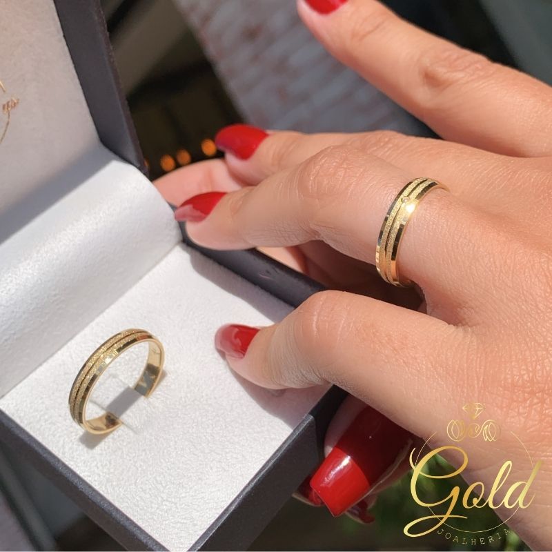 •Acabamento: Polida com 2 frisos diamantados e Feminina com pedra