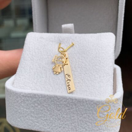 Pingente Plaquinha com Pingente Menina em Ouro 18k/750