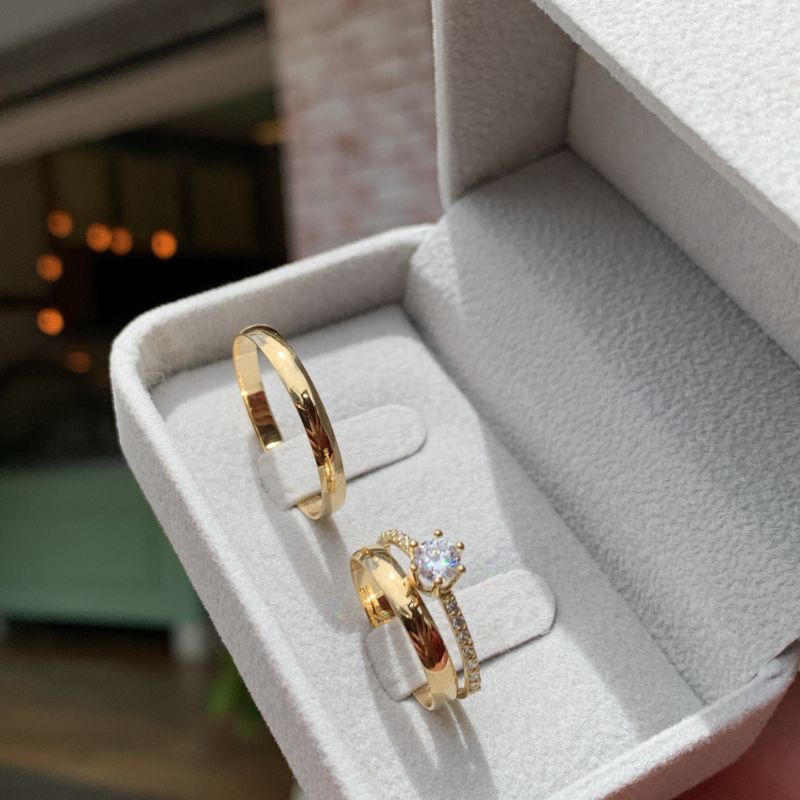 Seja o primeiro a avaliar “Trio de Alianças Abaulada 3mm + Anel Solitário Realeza em Ouro 18k/750” Cancelar resposta