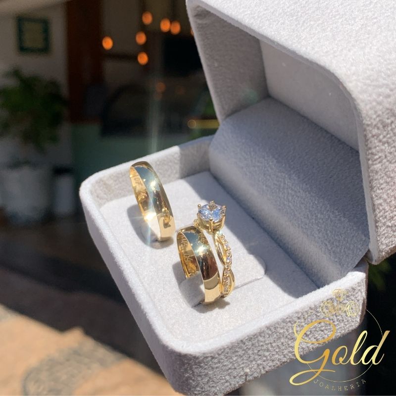 Trio de Alianças Abaulada 4,5mm + Anel Solitário My Dream em Ouro 18k/750