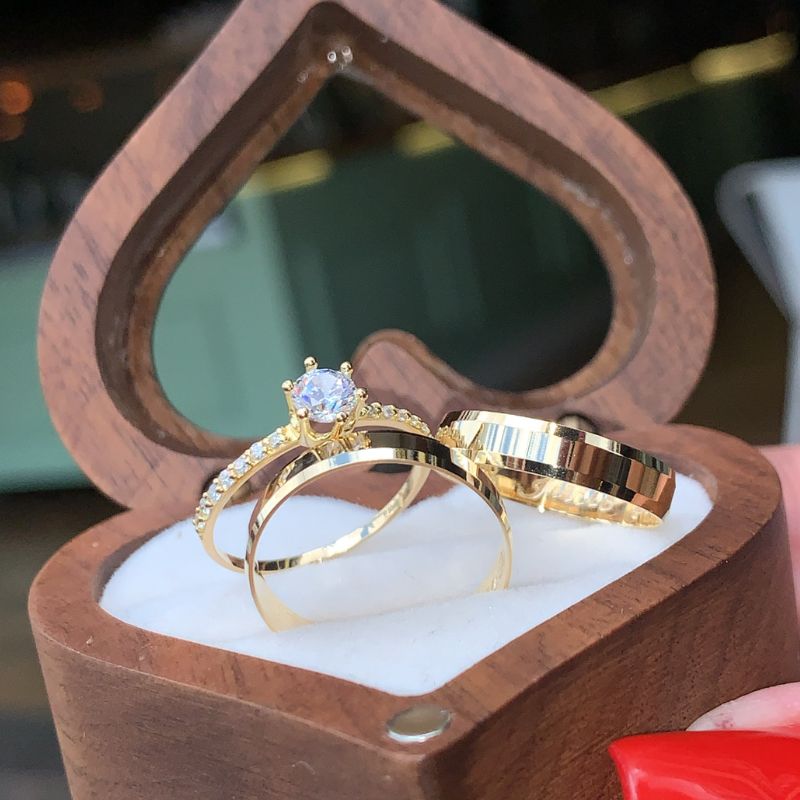 Trio de Alianças Arizona 3,5mm + Anel Solitário Athenas em Ouro 18k/750