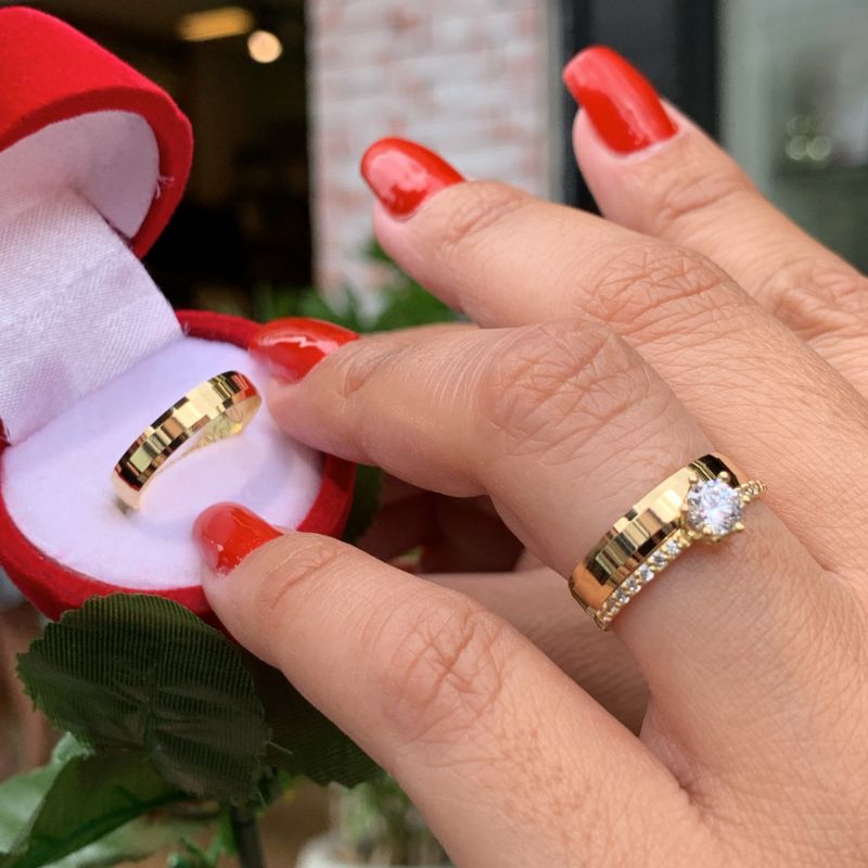 Seja o primeiro a avaliar “Trio de Alianças Infinity 4mm + Anel Solitário Realeza em Ouro 18k/750” Cancelar resposta