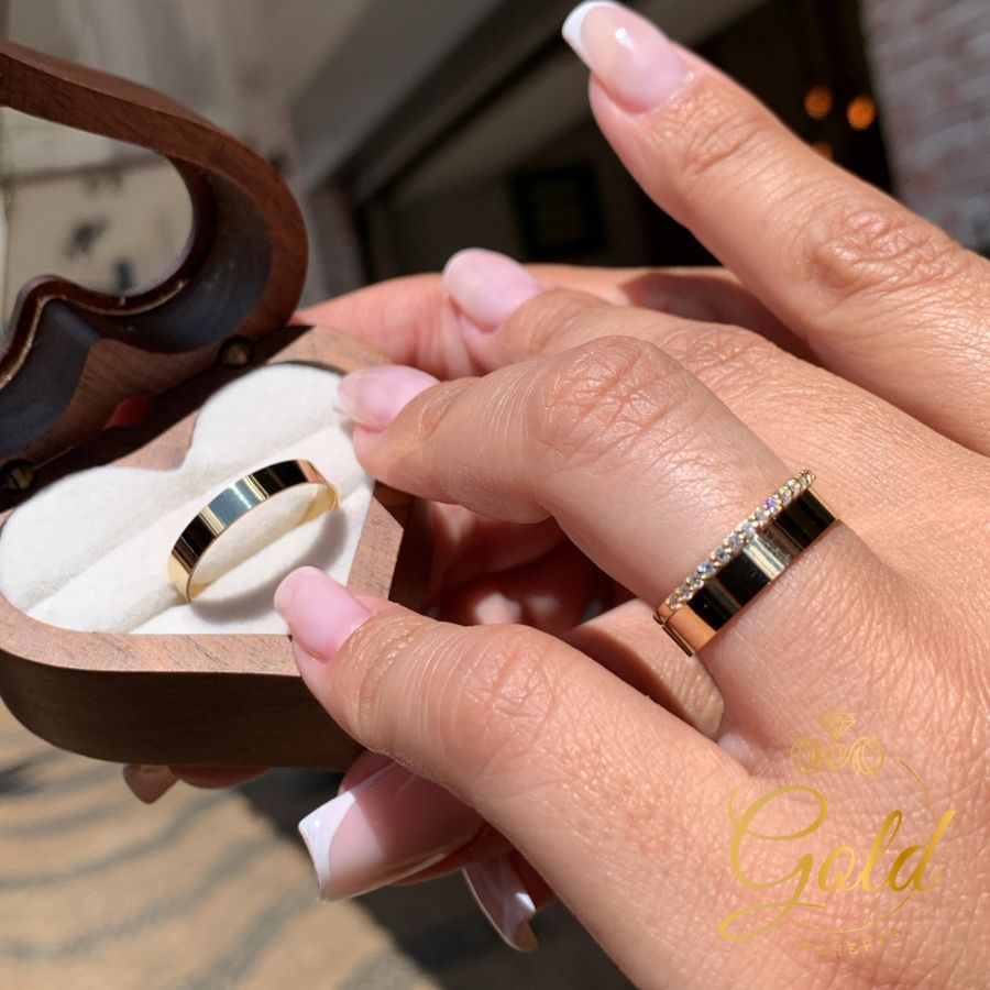 Trio de Alianças Infinity 4mm + Aparador Meia Volta de Pedras em Ouro 18k/750