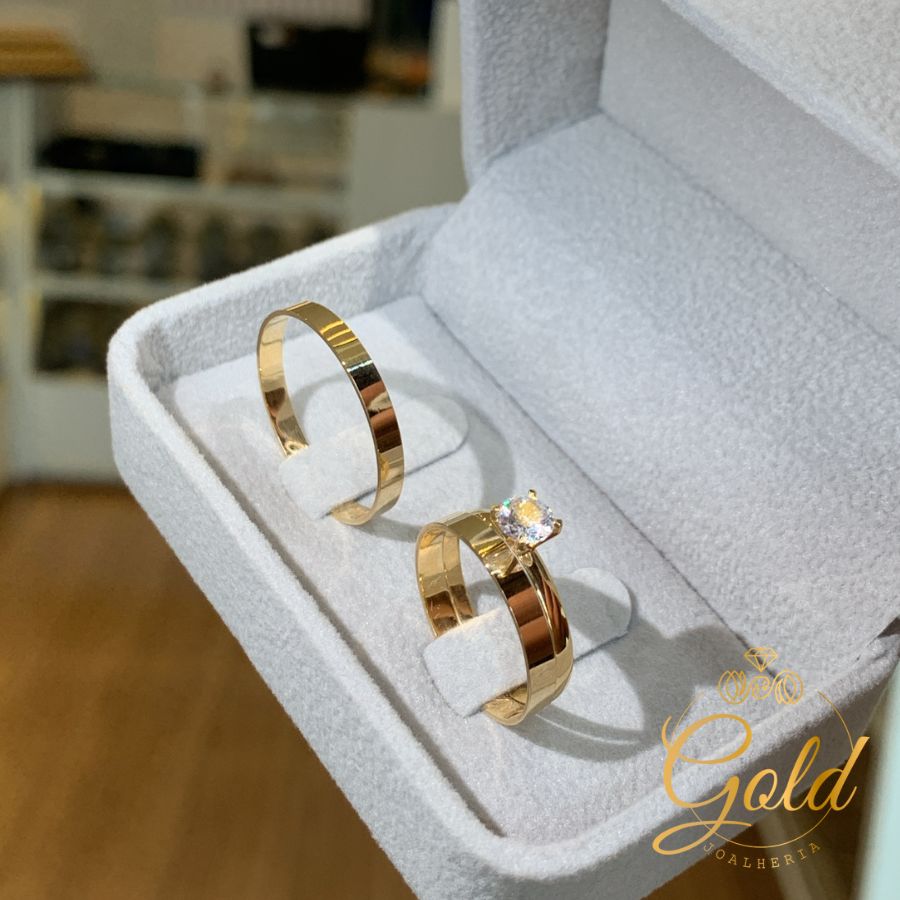 Trio de Alianças Paris 2,5mm + Anel Solitário Realeza em Ouro 18k/750