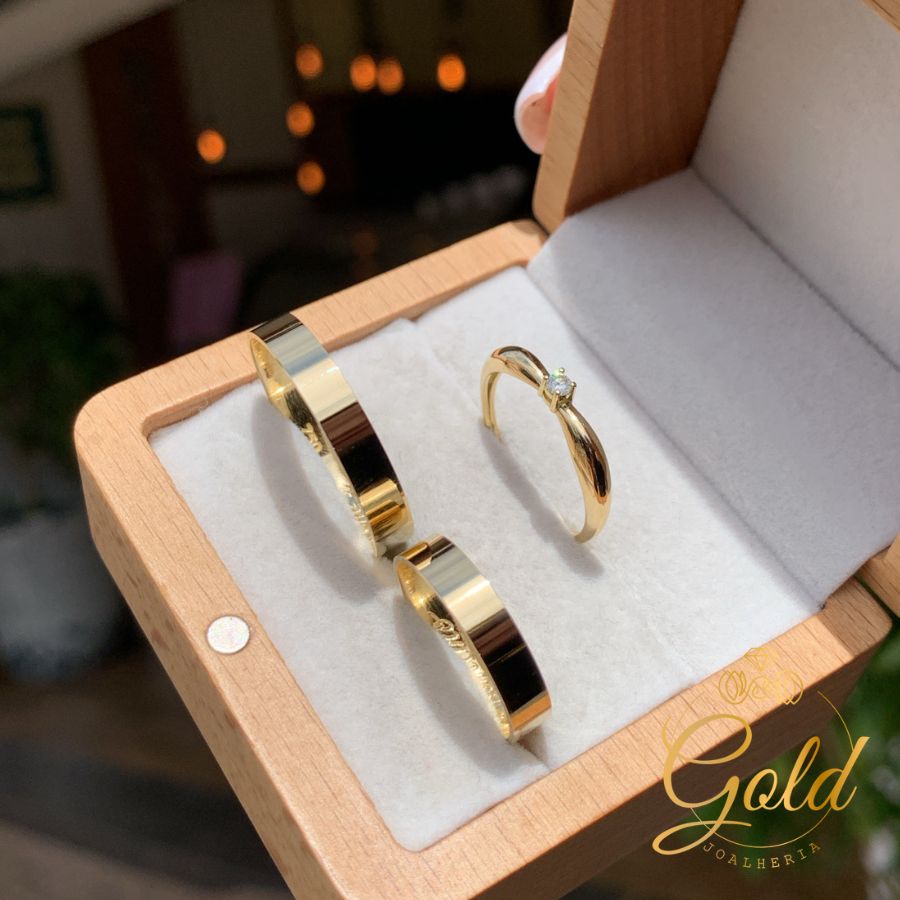 Trio de Alianças Paris 4mm + Anel Solitário Diamond em Ouro 18k/750
